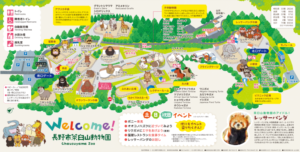 園内を回るのは大体2時間程見ておくと良いです。園内は結構坂もあるので大変ですが、1台200円でベビーカーが借りられたり、南口・北口・子供動物園横のトイレにはベビーベット有、北口には授乳室も有という事で乳幼児連れにも優しい動物園です。