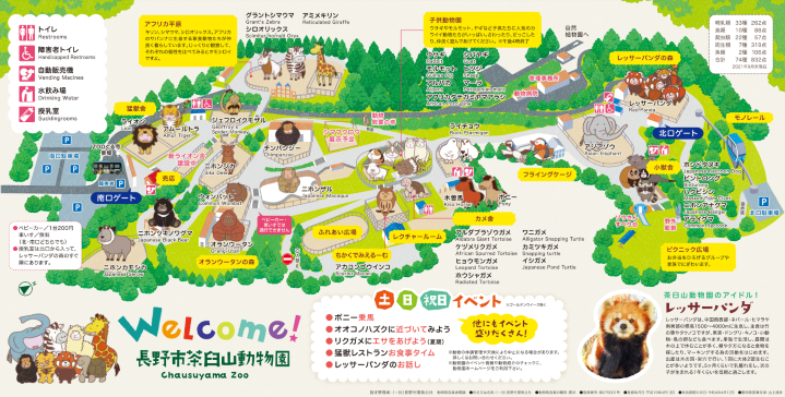 動物園だけを回ると1時間~2時間程度ですが、城山公園の遊具や噴水で遊んだり善光寺に寄ったりしたら一日楽しめますよ♪