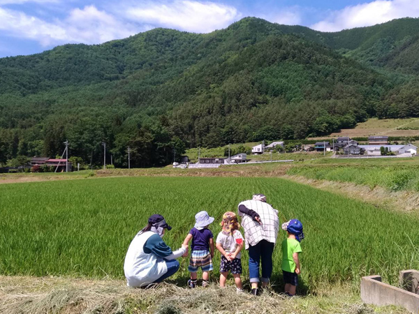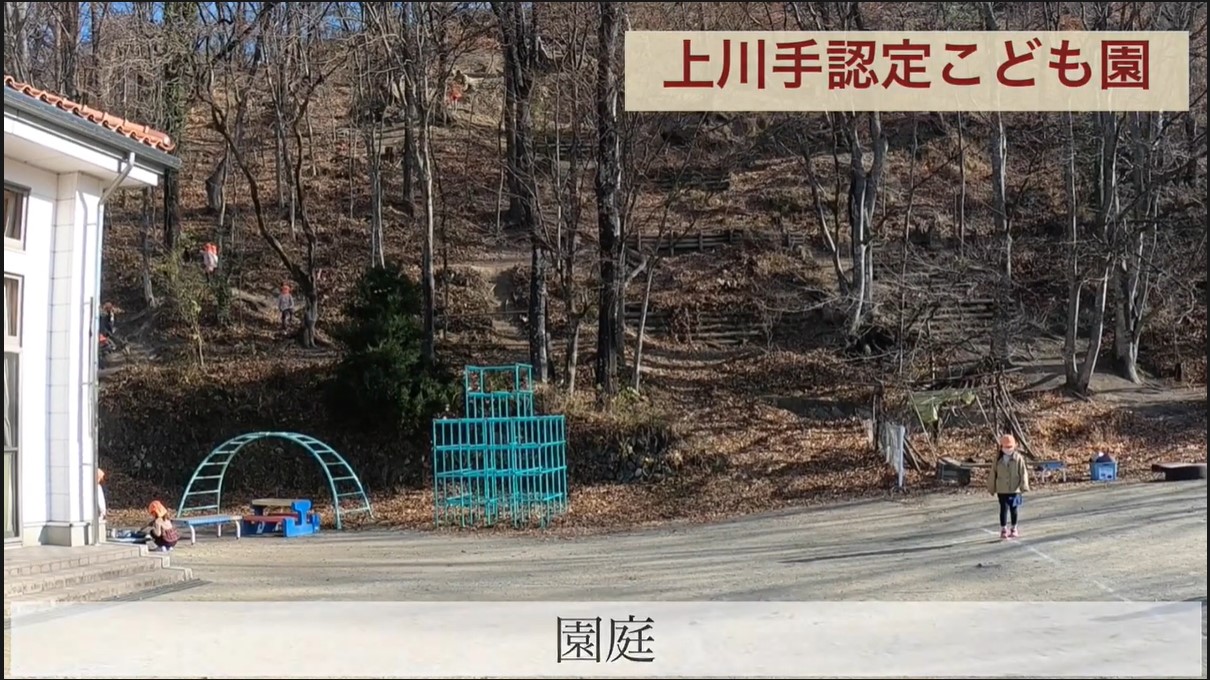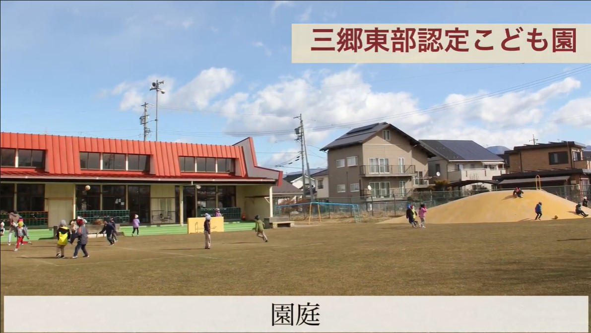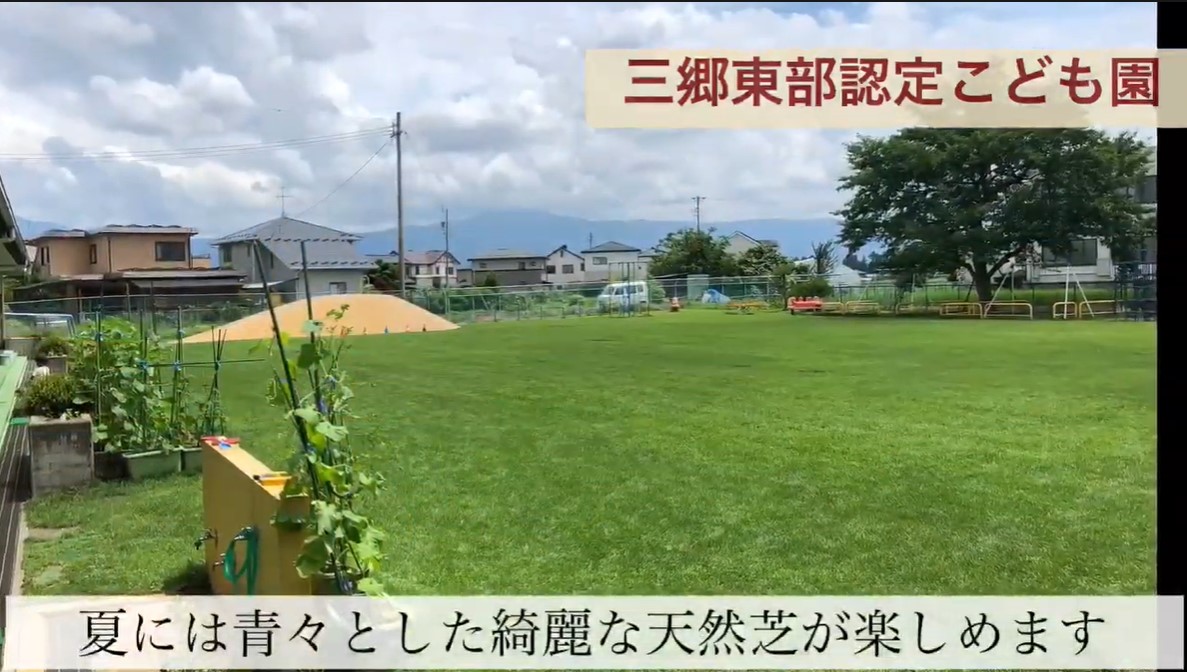 室山の北側、周囲にリンゴ畑やそば畑、菜の花畑も広がる自然豊かな地域にある認定こども園。定員は70名と市内の認定こども園の中では小規模な園。