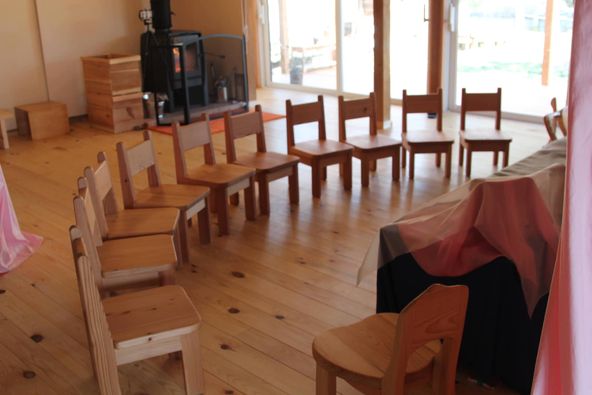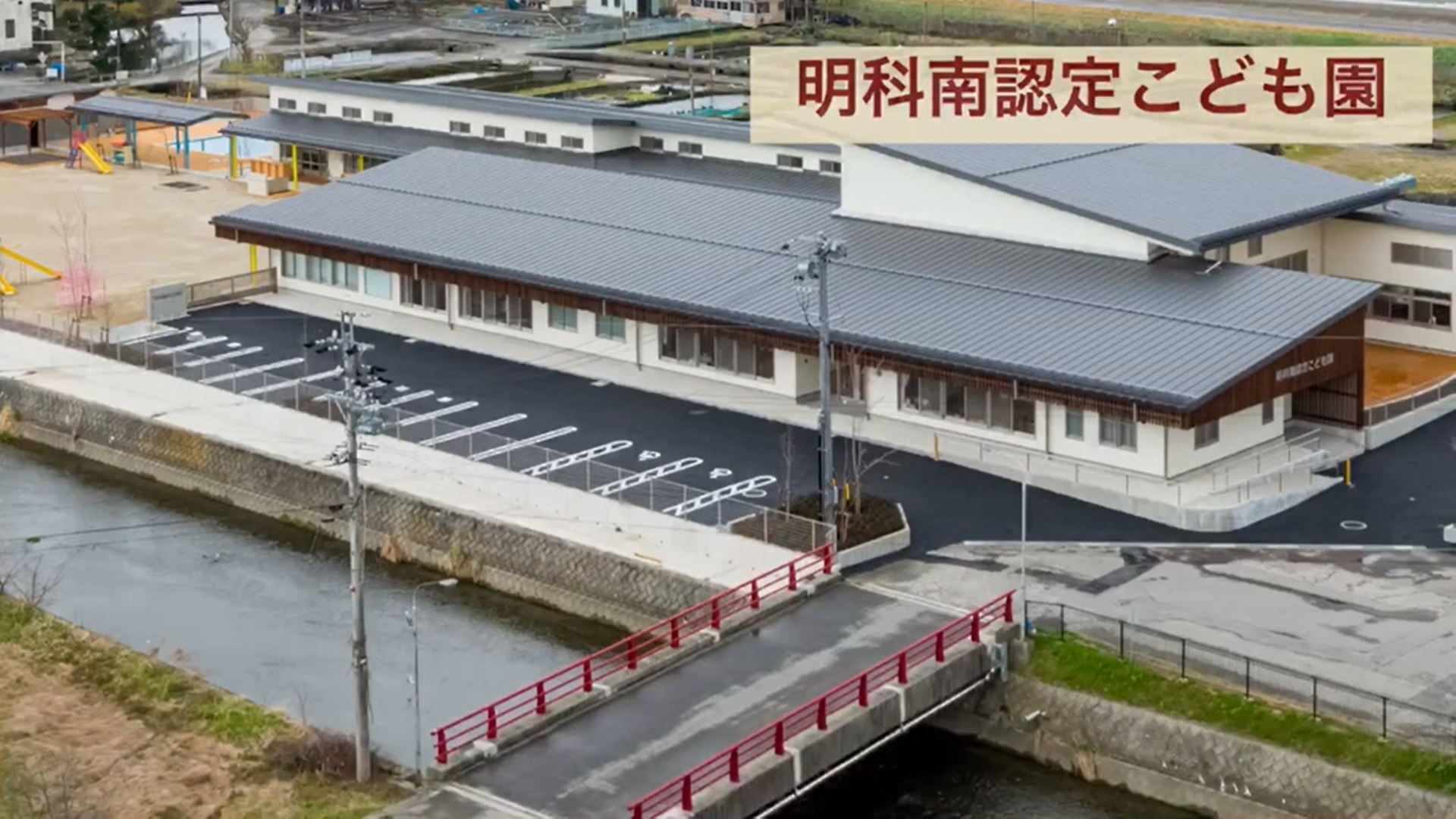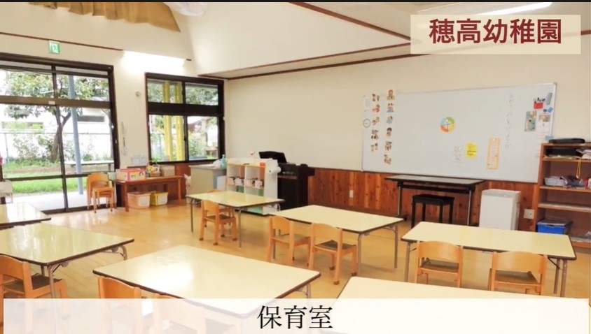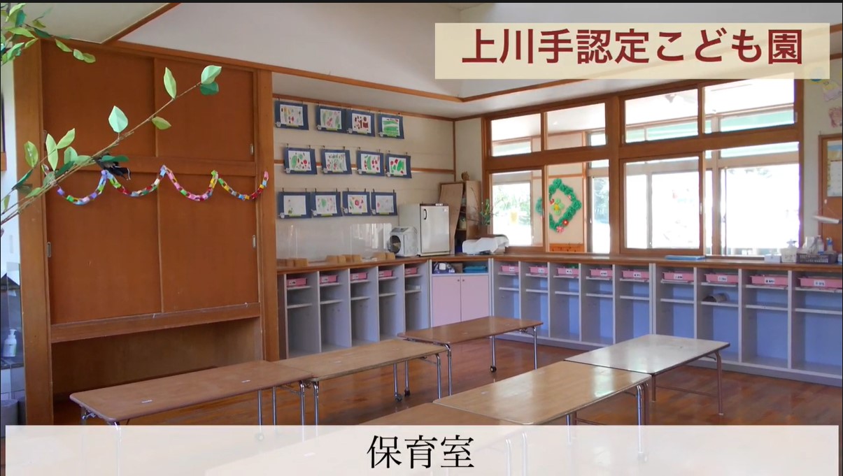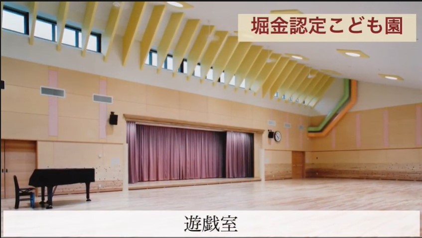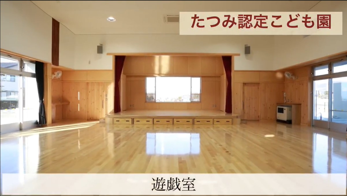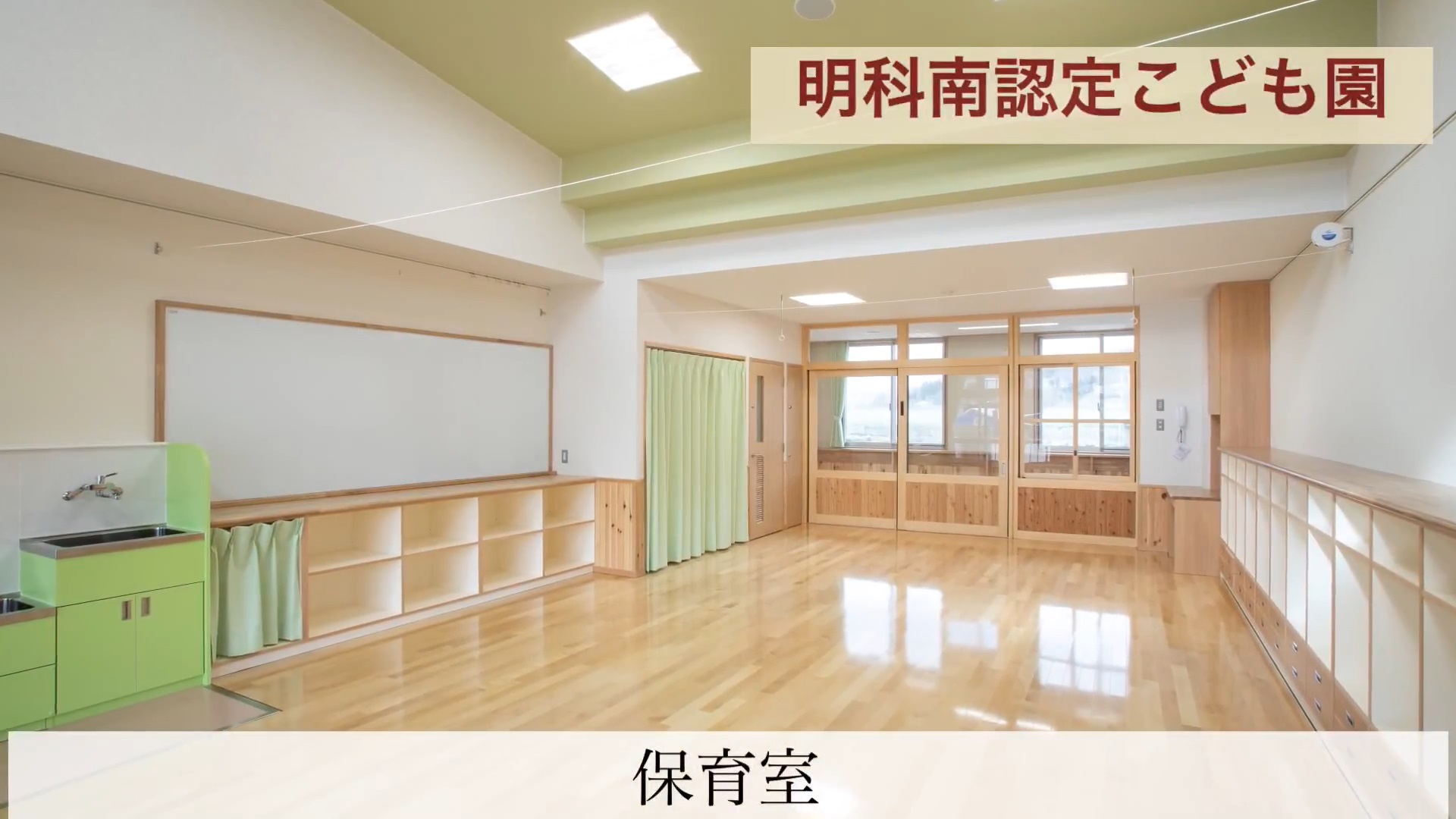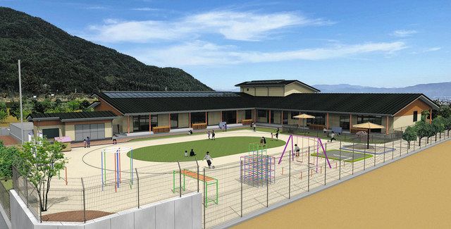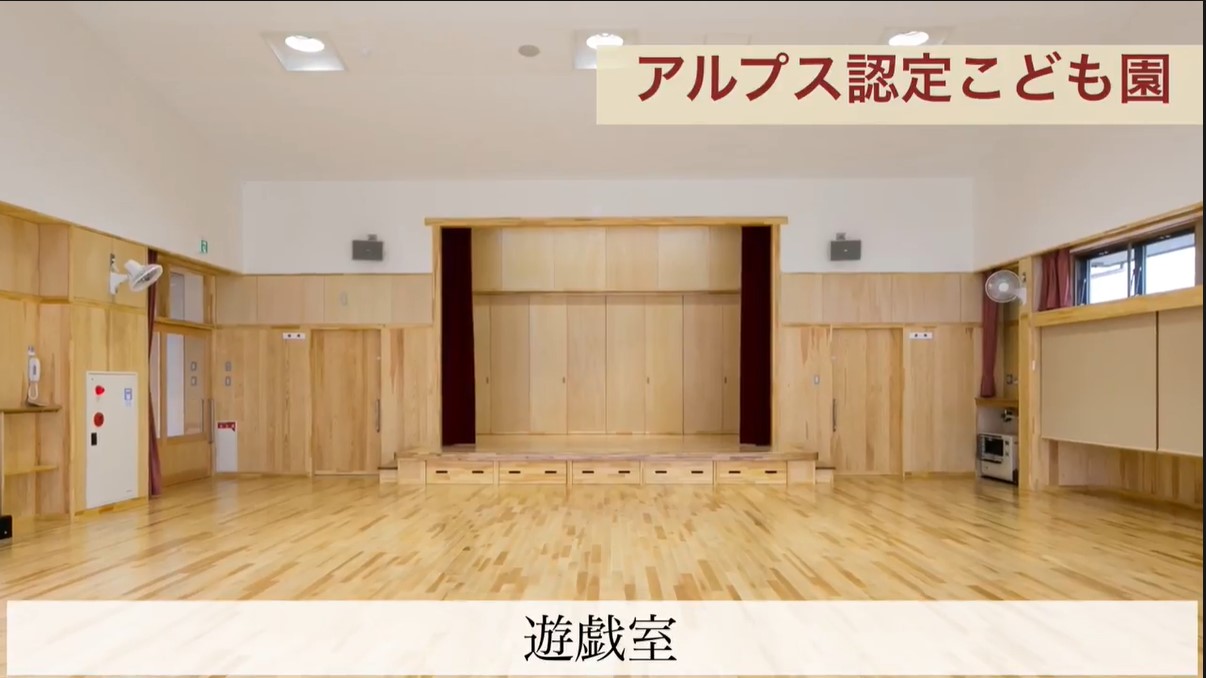 2022年7月に新しくなった校舎は室山の市有林から切り出した木材も活用し、ぬくもりのある園舎となっている模様。