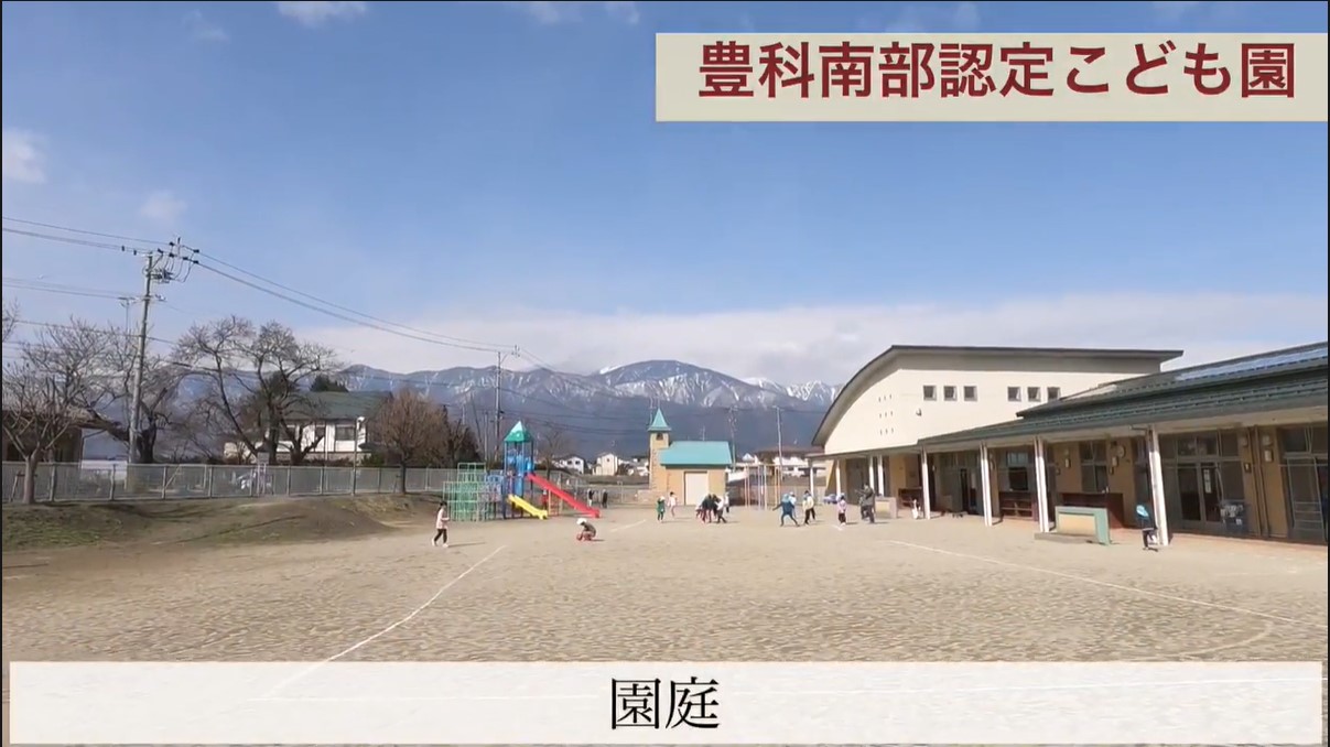 | 南穂高認定こども園 | 豊科南穂高2856 | 公立 | 普 | 160 | 30 | 40 | 60 | 60 | 6ヶ月~ | 7:30~19:00 | 〇 | - | 毎日(おかずのみ) | 1953.10.1 |