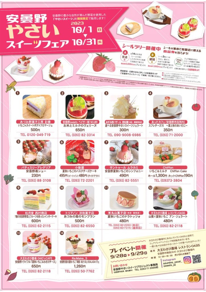 安曇野やさいスイーツフェア2023が10/1~31に開催されます。