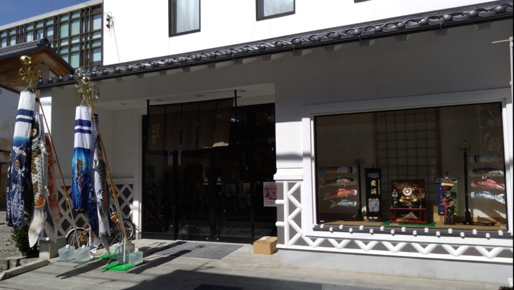 店舗自体はあまり大きくありませんが、中に入ると多数の展示があります。鎧飾りと兜飾りが展示の中心で幟旗や鯉のぼり等も点数は少ないですが取り扱っています。