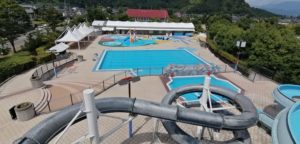 プールとしては県内最長の120mのスライダーがある他、流れるプールや幼児プール、飛び込みプール、50mの競泳プールがあります。なお、施設内は日差しが強く日陰に限りがあるので、サンダル等、個人用テントの持込が推奨されています。(+飲食の持込も可能)