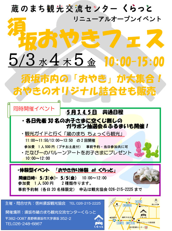 18. 5/3(水)-5(金)須坂おやきフェス@須坂市蔵のまち観光交流センター くらっと