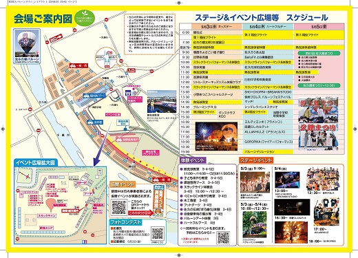 コロナ禍で直近4年は無観客開催でしたが4年振りの有観客開催と言う事で各種ステージイベントや体験イベントが予定されています。また更に今年は30周年記念ということで5/4夜には祝賀花火も上がります。
