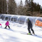 まだスキー等が難しい子は、500円/人(リフト券所持者無料)で利用できるキッズパークでチュービングやソリ、ストライダー、遊具を使った雪遊び等も楽しめます。また、ソリ遊び等は楽しいけれど坂を上るのが大変だったりしますが、ここは30mの動く歩道もあるので楽に楽しめます。