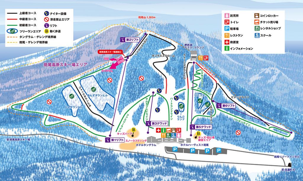 斑尾高原スキー場だけでも十分楽しめる広さとコースがありますが、+500円/日で隣接するタングラムスキーサーカス側も滑れる様になるのでスキー場を遊び尽くしたい人は共通券の購入がオススメです。