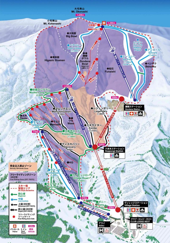 コース数44,リフト数20もあり、コース割合も初級:中級:上級=40:30:30となので初級~上級者まで様々な楽しみかたが出来ます。