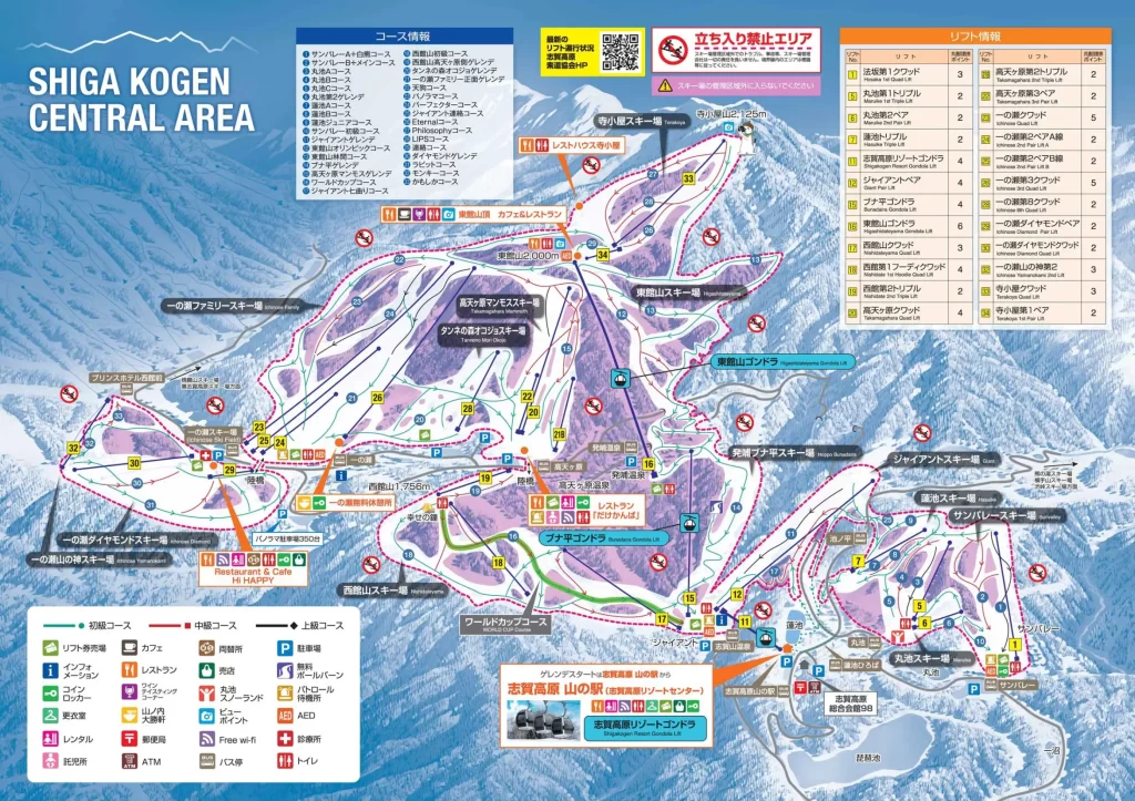 安曇野ICから信州中野ICまで高速利用で1時間20分程(高速から降りて30分程)となる志賀高原中央エリアは13のスキー場の集合体でコースもバリエーション豊かなスキー場です。
