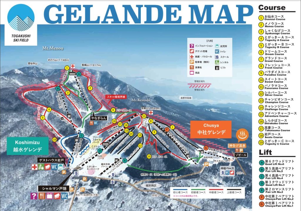 | コース数/リフト数 | 19 / 7 | 11 / 6 | 16 / 5 | 10 / 6 | 10 / 8 | 17 / 14 | 14 / 5 | 31 / 11 | 19 / 5 | 18 / 7 | 44 / 20 | 18 / 14 | 26 / 9 | 33 / 24 | 10 / 2 | 60 / 19 | 26 / 6 |