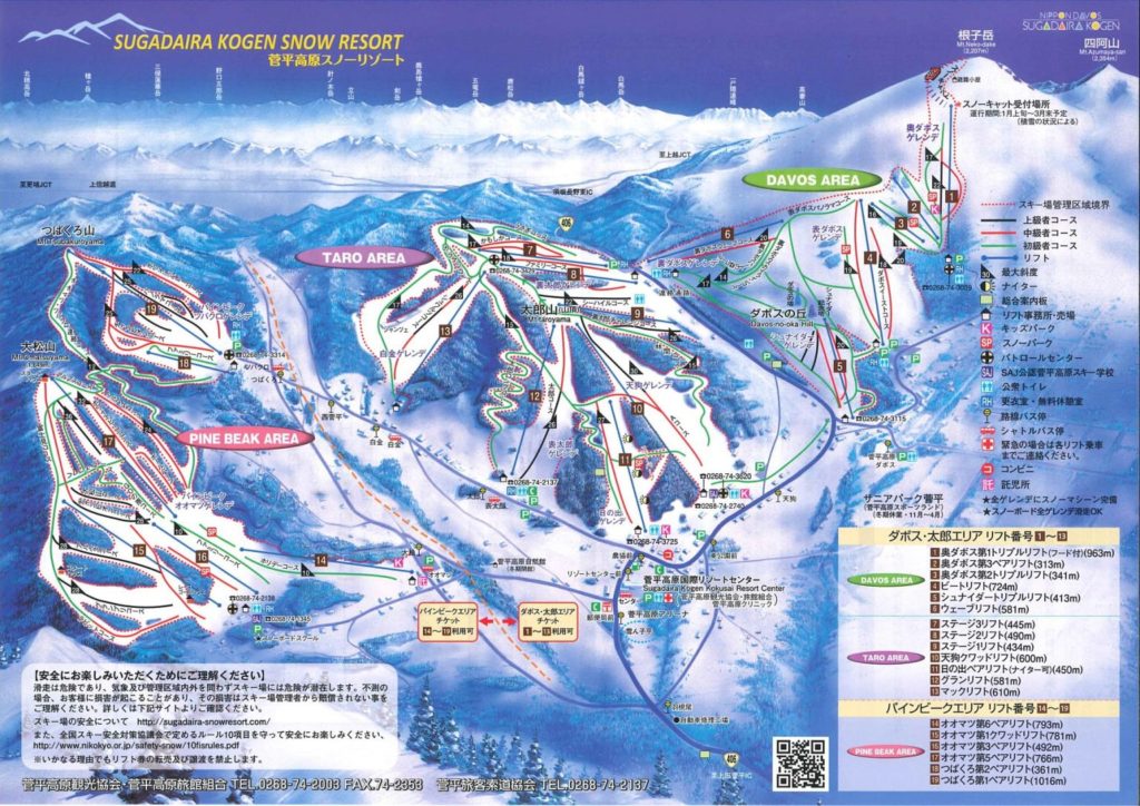 安曇野ICから須坂長野東ICまで高速利用で1時間15分程(高速から降りて35分程)となる菅平高原スノーリゾートは大きく3エリアに分かれ、リフト19基コース数60を誇る大規模スノーリゾートです。