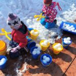 ソリでアーチを潜ったり、クッション遊具等で遊べる。