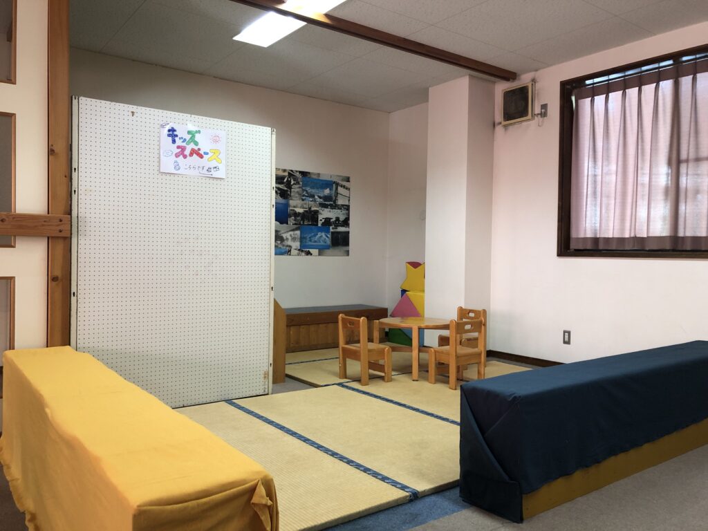 センターハウス内に無料のKIDSルームもあり、小さな滑り台やクッション遊具に大型モニタでのアニメ放映等の実施あり。