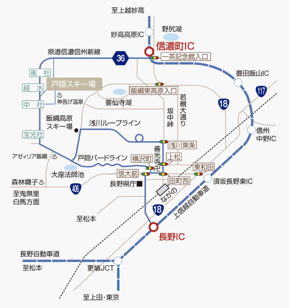戸隠・黒姫・妙高方面は距離としてはかなりありますが、戸隠スキー場を除けば