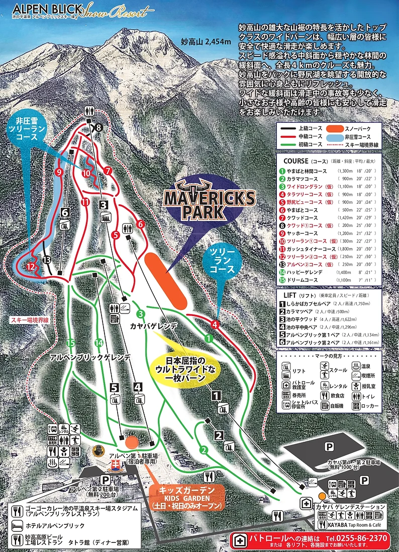 本サイトで記載しているスキー場情報は積雪が充分にあり、コースが全面開放となったハイシーズン時の状況で記載しています。