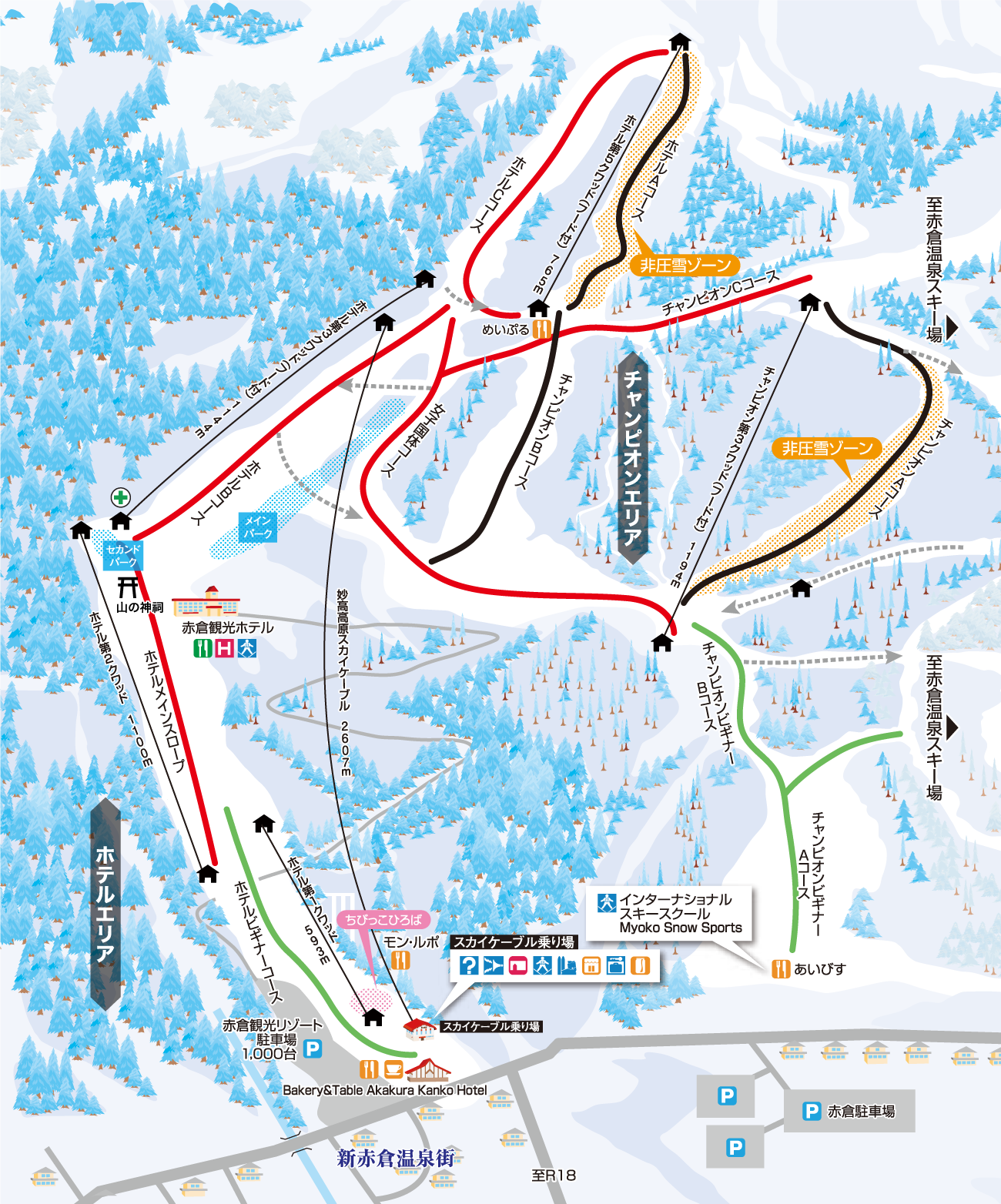 安曇野ICから妙高高原ICまで高速利用で1時間15分程(高速から降りて5分程)となる赤倉観光リゾートスキー場はコースは10と少し少な目ですが全8基あるリフトがすべて高速リフトで快適に楽しめるスキー場です。