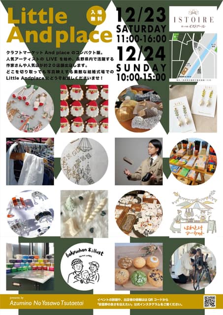 安曇野市高家、梓橋駅から徒歩15分程の誓いの森イストアールを会場に12/23(土)-24(日)「Little And Place」「Xmas Live」を開催予定です。