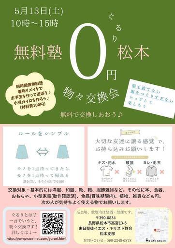 - 5/13(土) ぐるり物々交換@松本市高宮(自衛隊駐屯地近く)