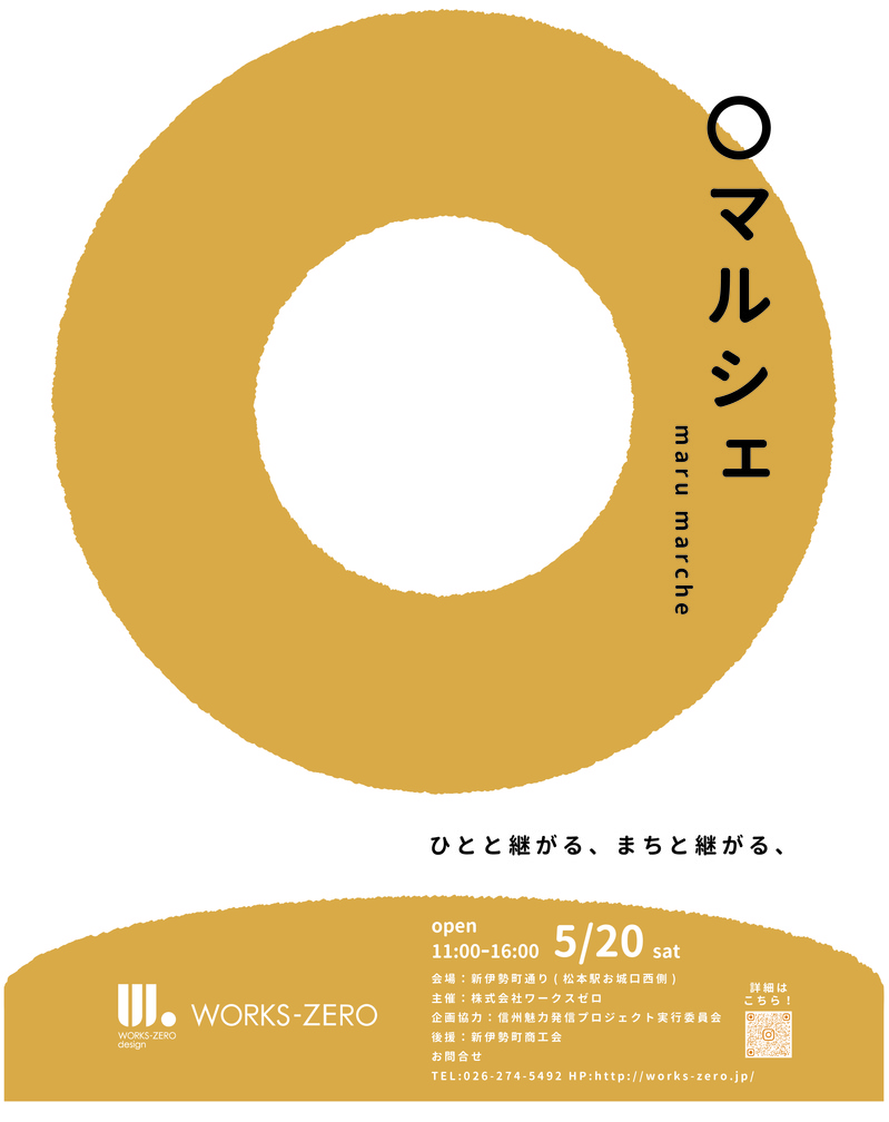 ”ひとと継がる、まちと継がる”をコンセプトにしたマルシェが5/20(土)11:00~16:00、松本駅前と駅前のビックエコーから伊勢町通りと公園通りに向かう1区間を歩行者天国にして開催されます。