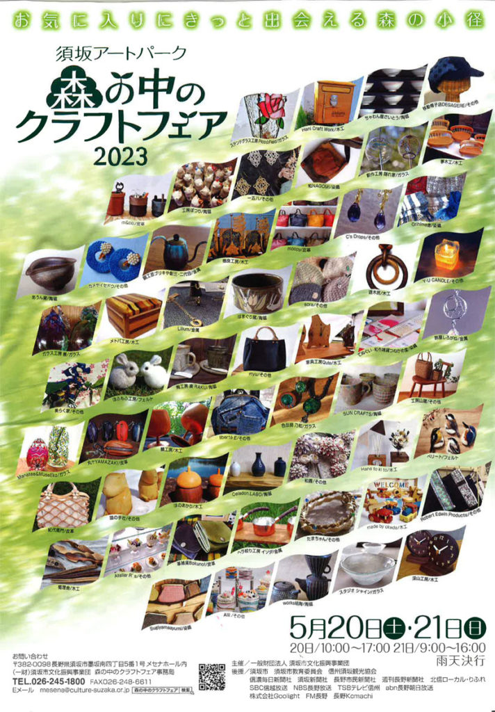 - 5/20(土)-21(日) 森の中のクラフトフェア@須坂市須坂アートパーク※雨天決行