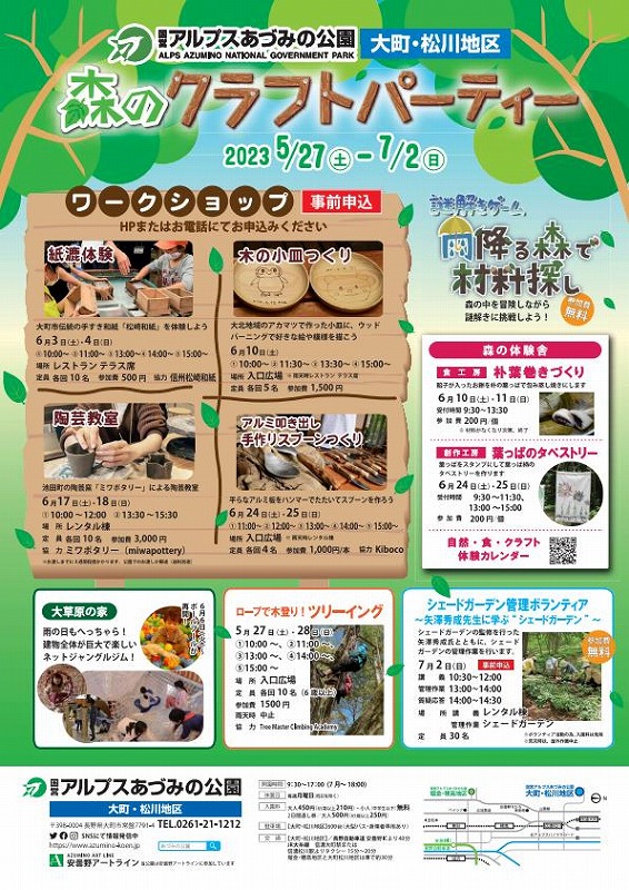 - 5/27(土)-7/2(日) 森のクラフトパーティー@国営アルプスあづみの公園(大町・松川地区)