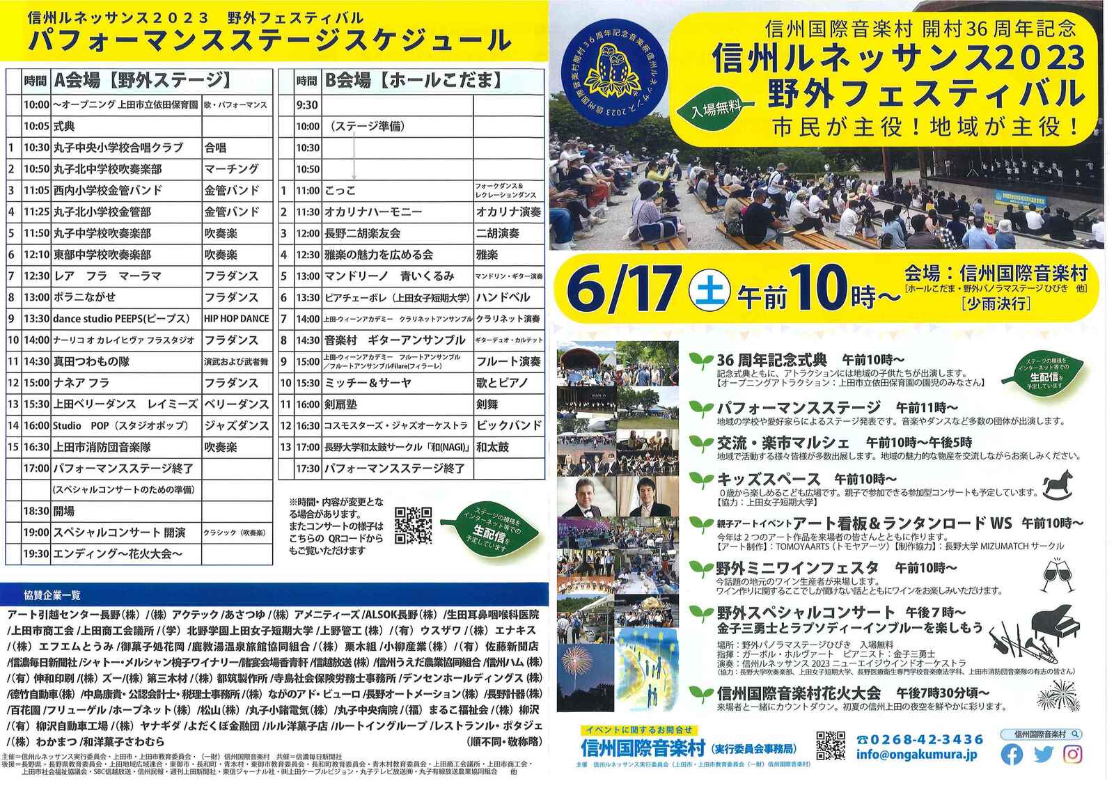 - 6/17(土) 信州ルネッサンス2023+花火大会@上田市信州国際音楽村