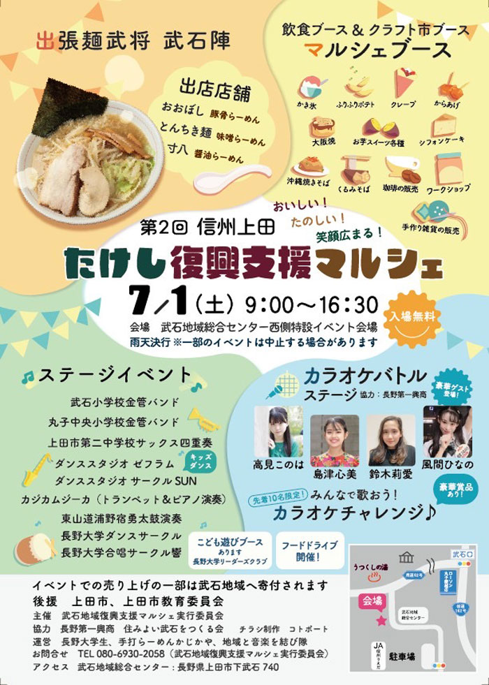 - 7/1(土) 信州上田たけし復興支援マルシェ@上田市武石地域総合センター