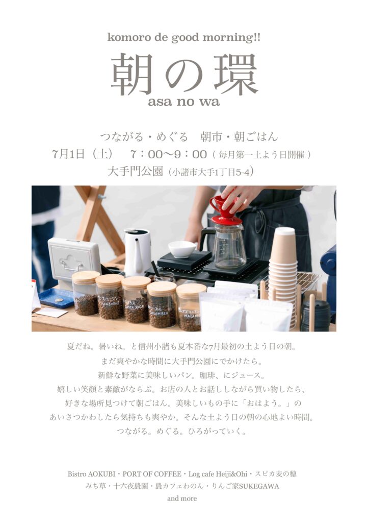 安曇野ICから車で1時間程の小諸市大手門公園のまちタネ広場では7/1(土)朝から以下2種のイベントが開催される予定です。