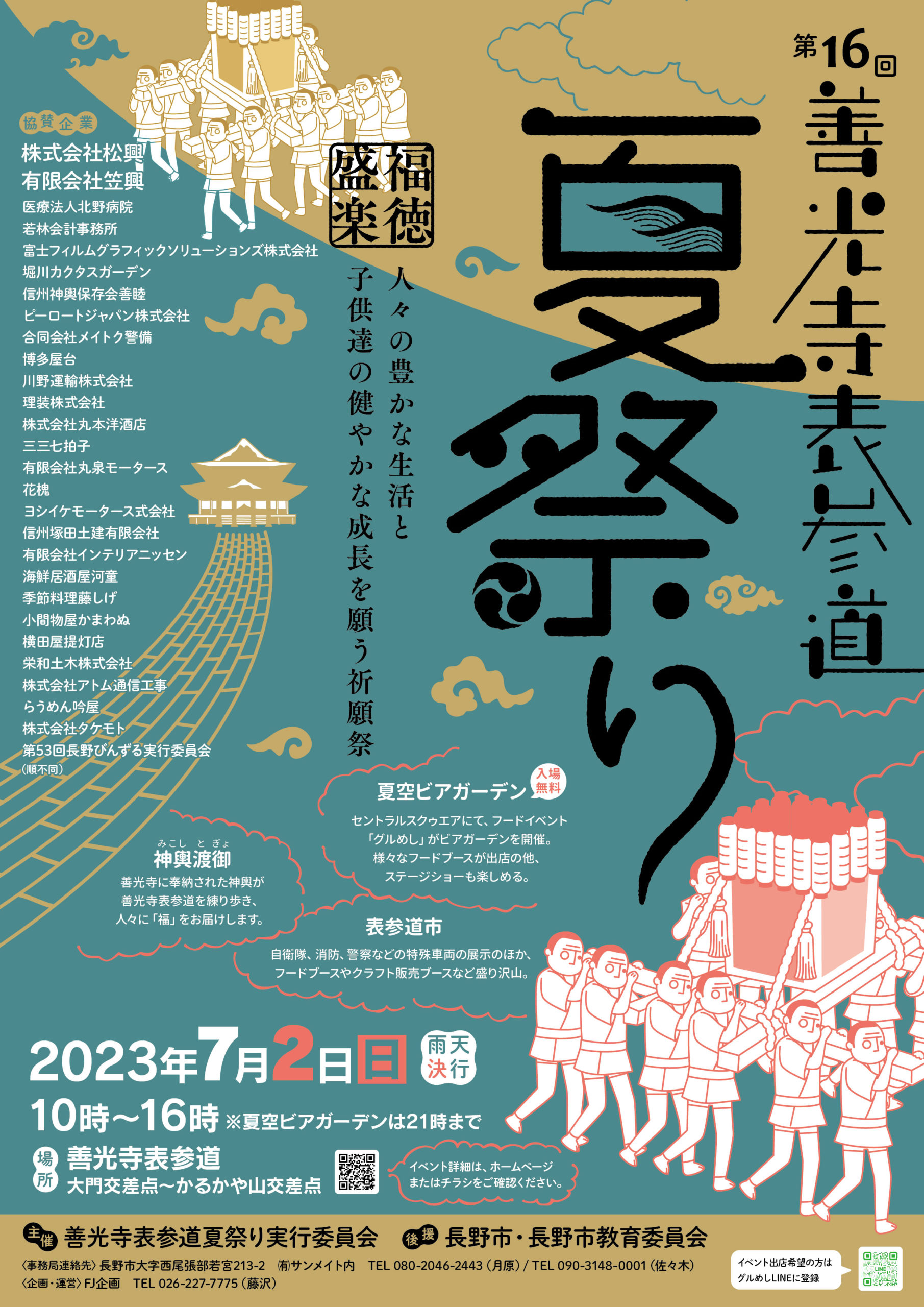安曇野ICから高速利用で1時間程となる長野市善光寺の表参道で第16回夏祭りが開催予定です。