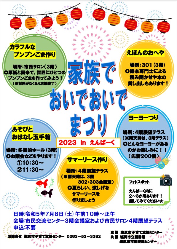 7/8(土) 家族でおいでおいでまつり@塩尻市えんぱーく