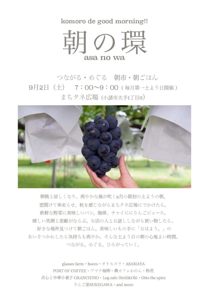 - 9/2(土) まちタネヨガ+朝の環@小諸市まちタネ広場