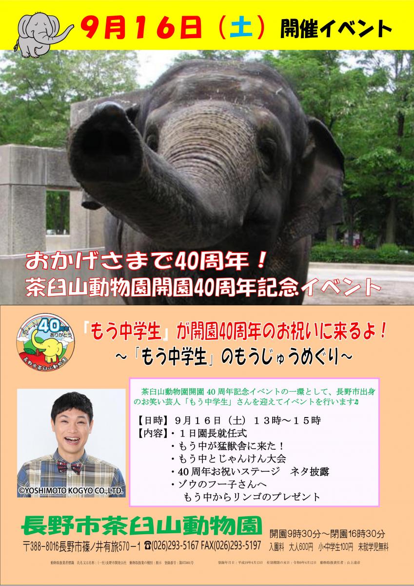 9. 9/16(土) もう中学生 開園40周年お祝い@茶臼山動物園