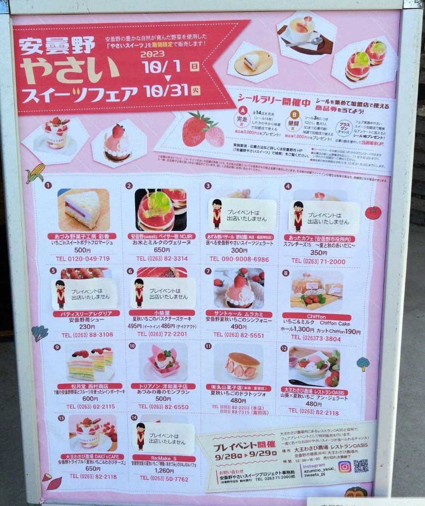 - 9/28(木)-29(金) 安曇野やさいスイーツフェアプレ@安曇野市大王わさび農場