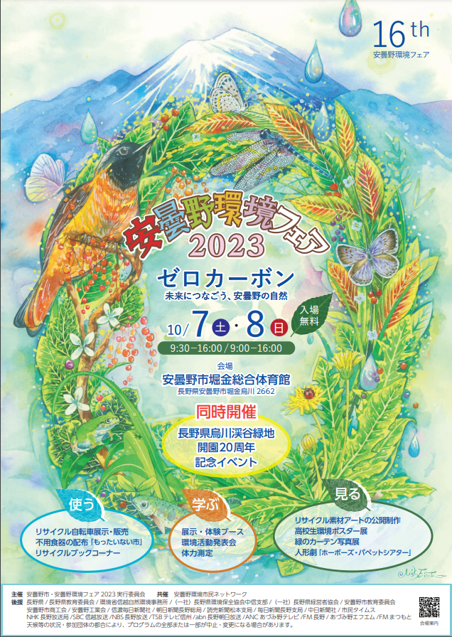 安曇野市堀金総合体育館を会場に10/7(土)-8(日)9:30-16:00「安曇野環境フェア2023」が開催されます。