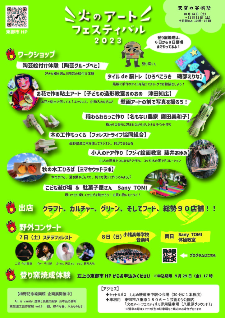 1. 10/2(月)-8(日) 火のアーティフェスティバル@東御市芸術むら公園
