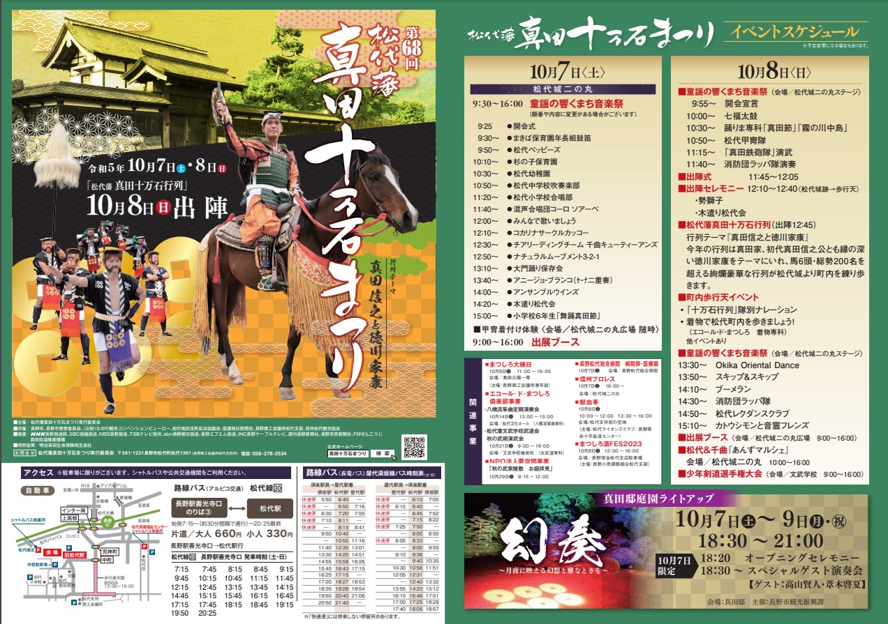 安曇野ICから長野ICまで高速利用で40分程の松代城周辺で10/7(土)-8(日)「松代藩真田十万石まつり」を開催します。