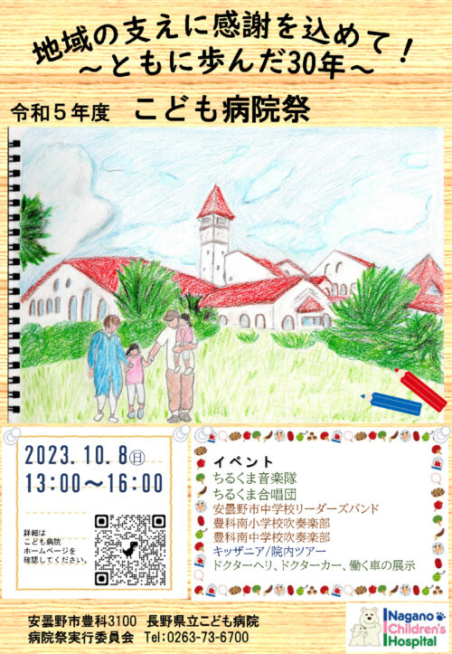 安曇野市にある長野県立こども病院では10/8(日)13:00~16:00「こども病院祭」を開催する予定です。