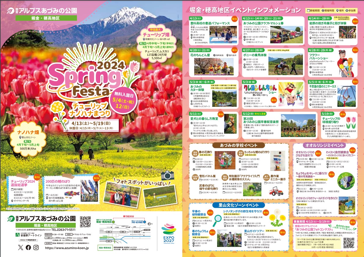 - 4/13(土)~5/19(日) チューリップ・ナノハナまつり@国営アルプスあづみの公園(穂高・堀金地区)