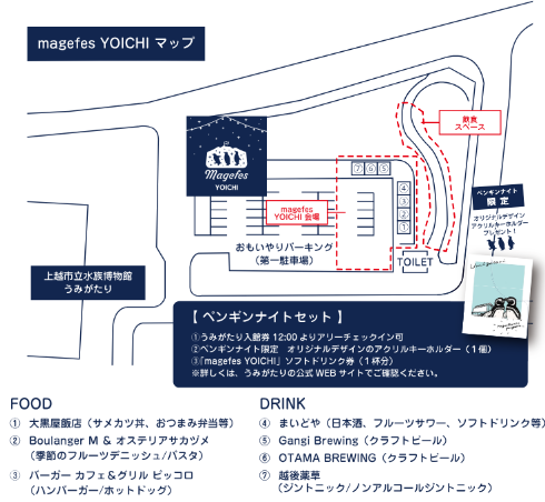 ※megafesYOICHIは入場無料ですが、ペンギンナイトには通常の入館券(窓口・うみがたりHP・アソビューで購入可)と異なるペンギンナイト用のチケットが必要です。