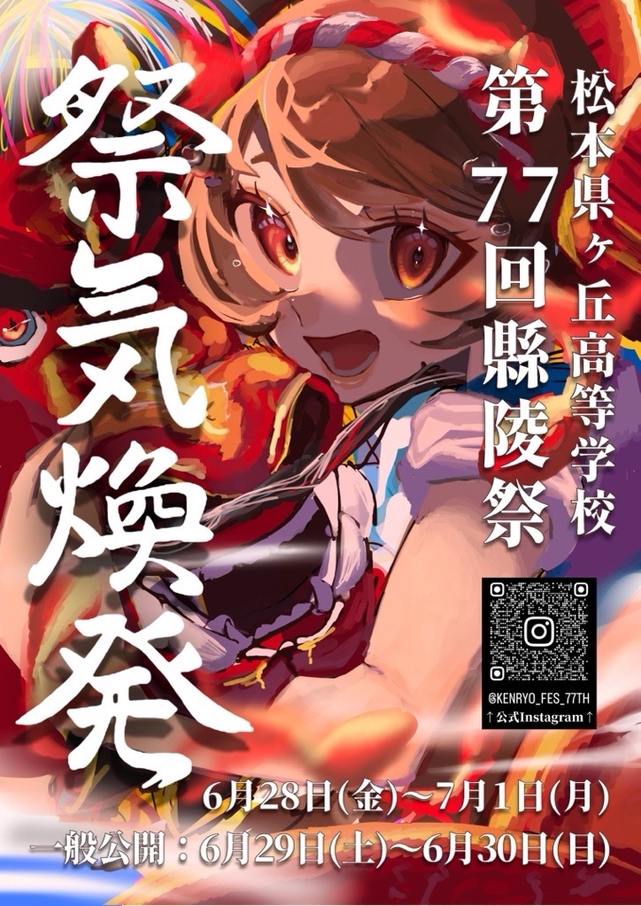 - 6/29(土)-30(日) 第77回縣陵祭(一般公開)@松本市松本県ヶ丘高校