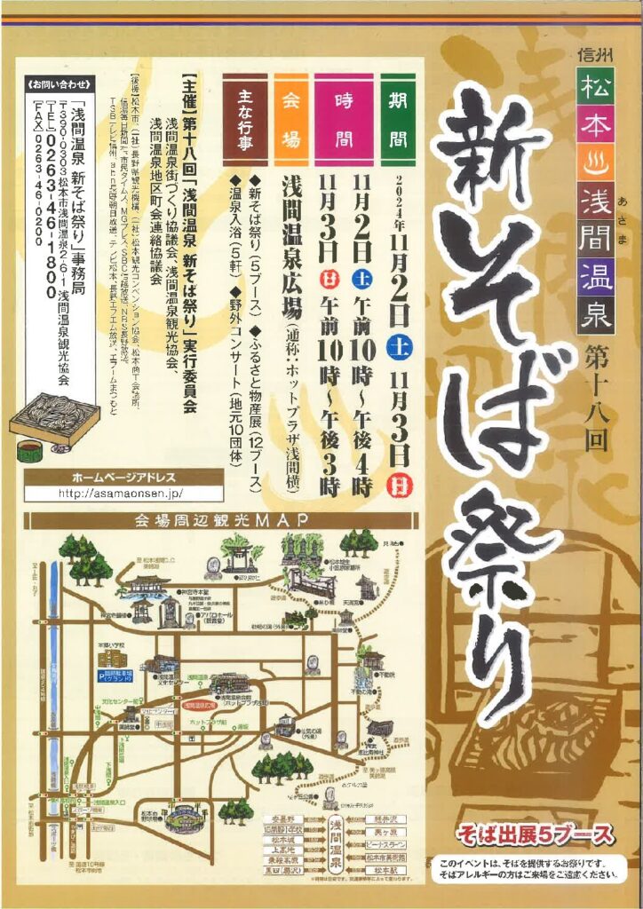 浅間温泉広場(ホットプラザ浅間横)で11/3(日)10時~16時、「第18回新そば祭り」が開催されます。