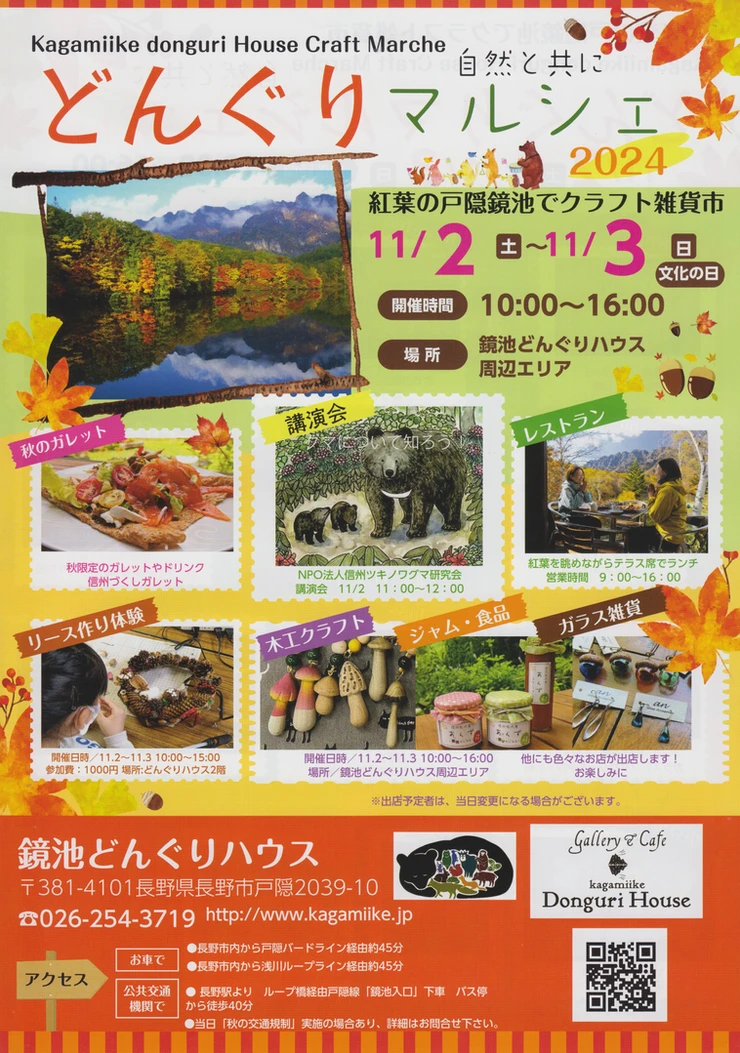 11/2(土)-3(日) 鏡池どんぐりマルシェ@長野市戸隠鏡池どんぐりハウス