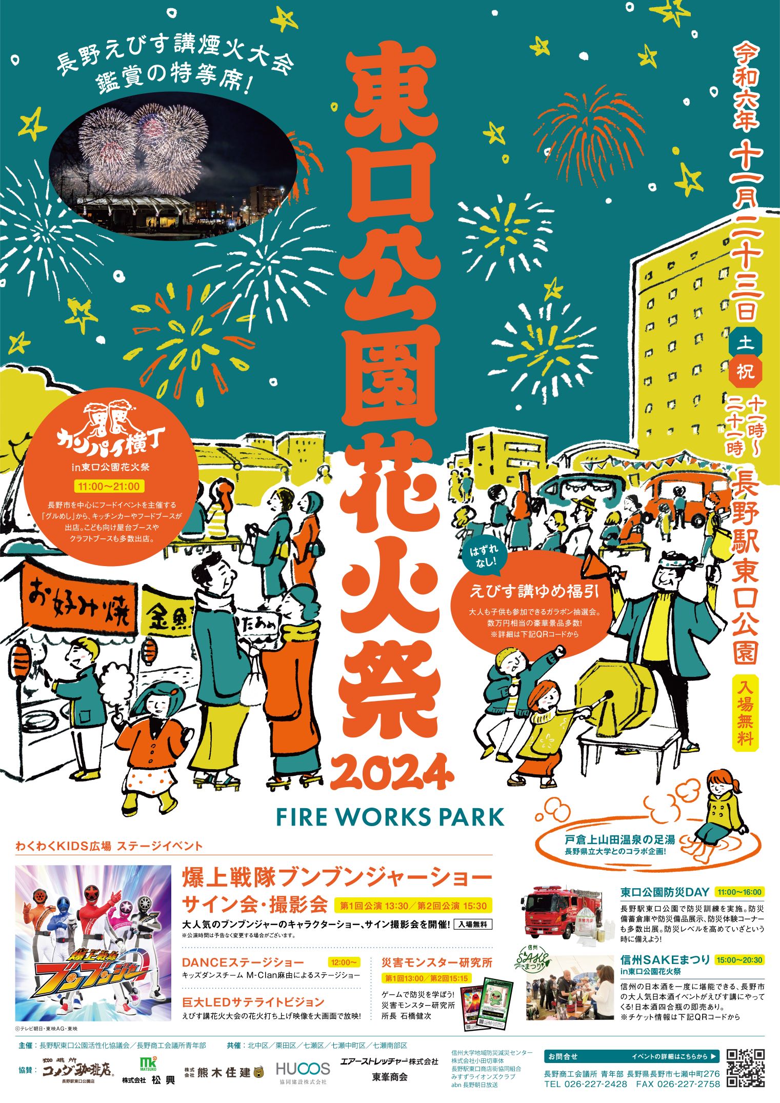 安曇野ICから長野ICまで高速利用で1時間程の長野駅東口公園を会場に11/23(土)11時~21時「東口公園花火祭」が開催されます。