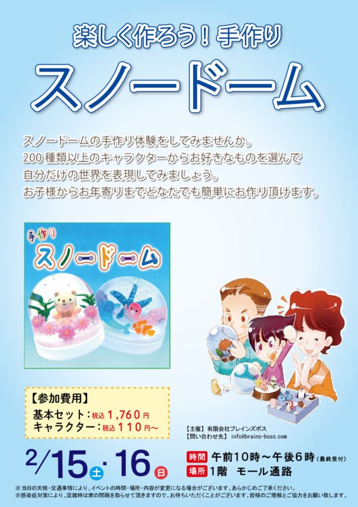 2/15(土)-16(日) スノードーム作り+ドームプラネット+α@上田市アリオ上田