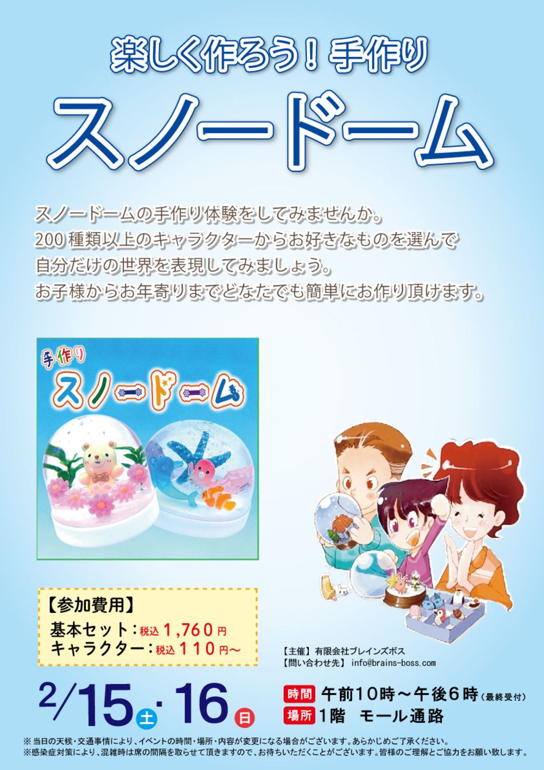 1. 2/15(土)-16(日) スノードーム作り+ドームプラネット+α@上田市アリオ上田