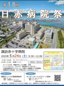 安曇野ICから岡谷ICまで高速利用で50分程の諏訪赤十字病院で5/24(土)9時半~12時「日赤病院祭」が開催されます。