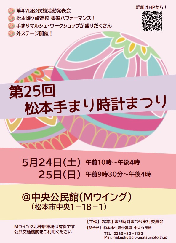 - 5/24(土)-25(日) 松本手まり時計まつり@松本市Mウィング・伊勢町通り