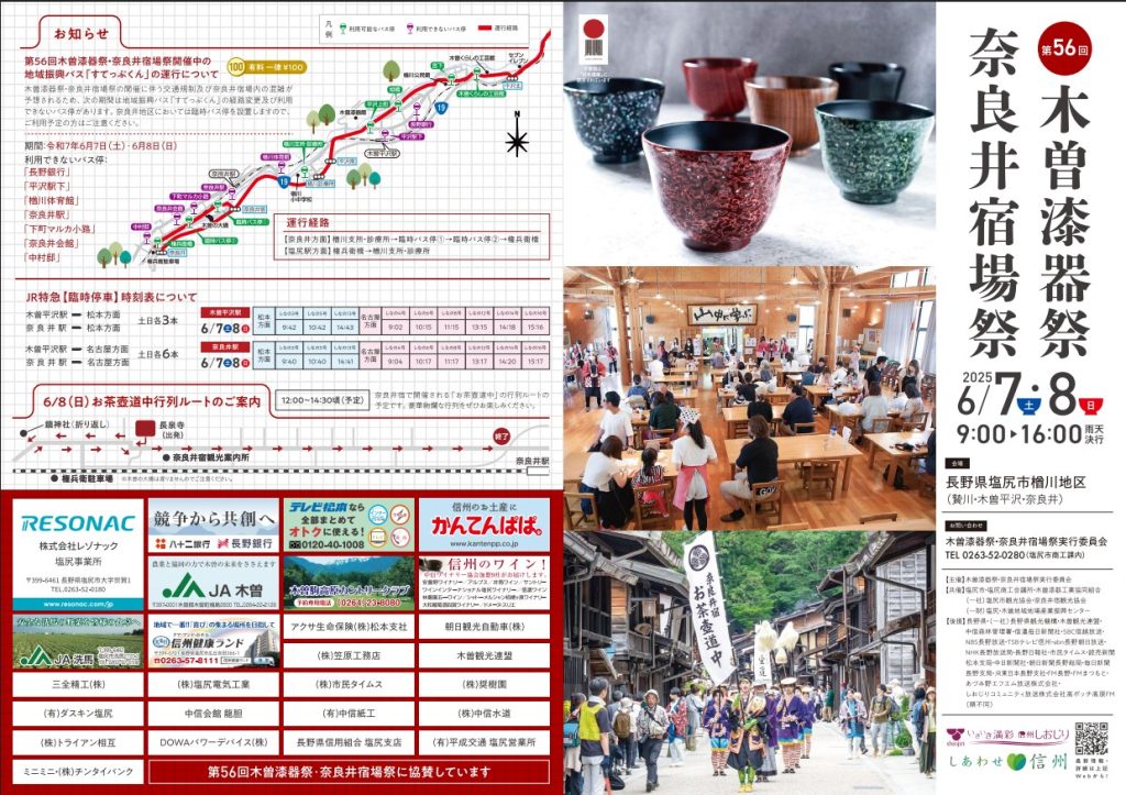 6/7(土)-8(日) 木曽漆器祭・奈良井宿場祭@塩尻市(木曽平沢・奈良井宿)