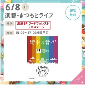 イオンモール松本の風庭3Fフードフォレストミニステージで、6/8(日)15時~17時、「楽都・まつもとライブ」が開催され素敵な生演奏を楽しめます。